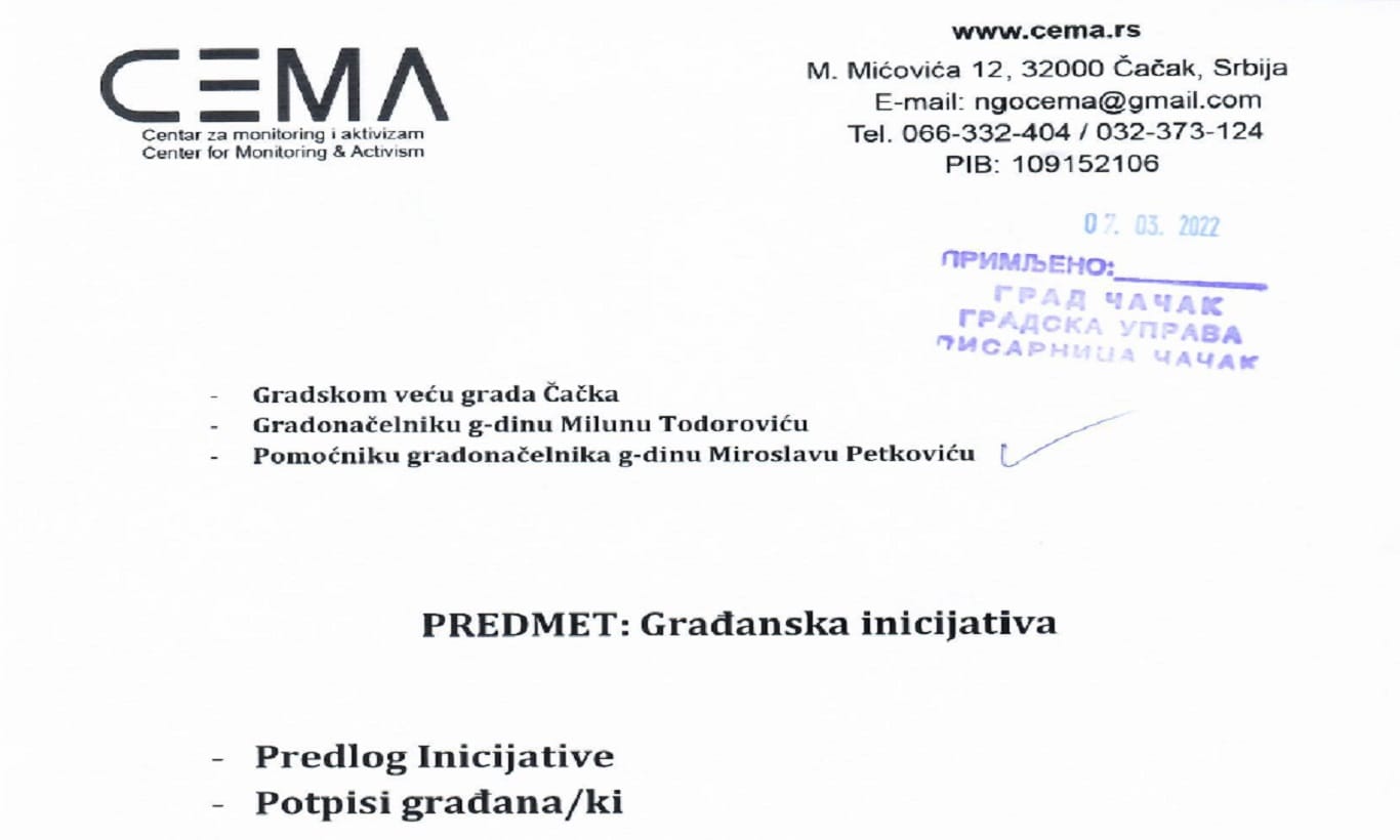 Imajući u vidu da grad Čačak još uvek nije raspisao Konkurs za sufinansiranje projekata u oblasti javnog informisanja za 2022. godinu, verujemo da postoje realne mogućnosti da se ova Inicijativa realizuje u tekućoj godini. U prilogu predatog dokumenta je i 105 potpisa osoba sa invaliditetom iz svih čačanskih udruženja, članova njihovih porodica, novinara i drugih medijskih radnika, kao i građanskih aktivista koji su dali podršku ovoj inicijativi.