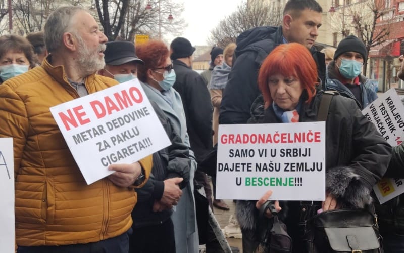 Oni su nosili transparente „Gradonačelniče, samo Vi dajete našu zemlju u bescenje“, „Metar dedovine za paklu cigareta“, „Stop pritisku na veštake i sudove“… Zahtevali su da ih primi gradonačelnik Čačka, Milun Todorović, koji je, kako kažu, „pobegao“, pa ih je u skupštinskoj sali udostojio sastanka njegov pomoćnik Milan Bojović.