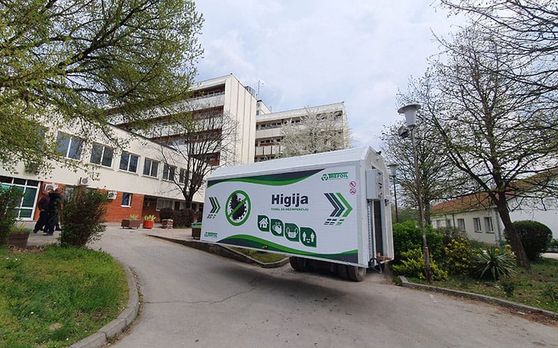 U Opštoj bolnici Čačak postavljen je tunel za dezinfekciju radnika koji ulaze i izlaze iz te zdravstvene ustanove, tako da će rizik unošenja i iznošenja infekcije biti znatno umanjen.