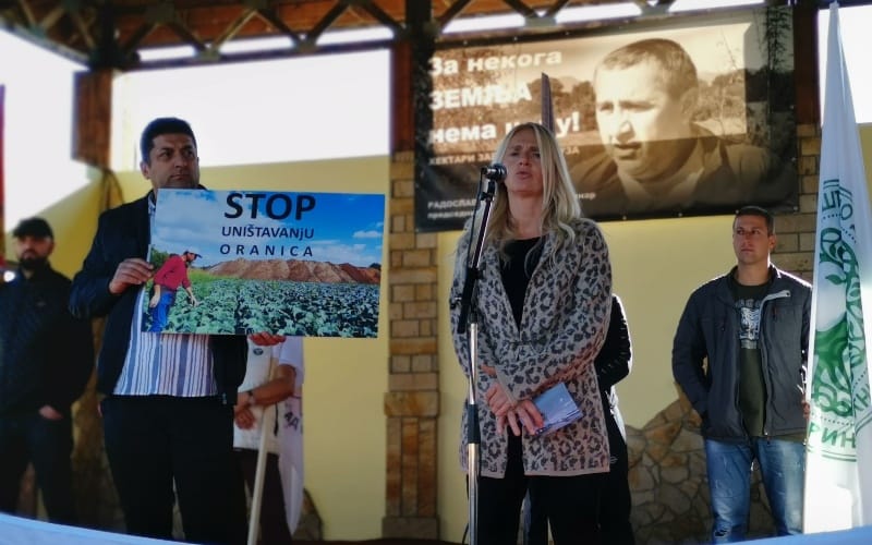 „Pet godina se sudim sa državom zbog parcele površine 1 ha u Konjevićima. Oni su nam ponudili sumu za poljoprivredno zemljište i dan danas se ganjamo po sudu. Obećano nam je, da ukoliko 2/3 meštana bude protiv oduzimanja zemlje, eksproprijacije neće ni biti, ali su nas slagali“, izjavio je on na protestu u Mrčajevcima.